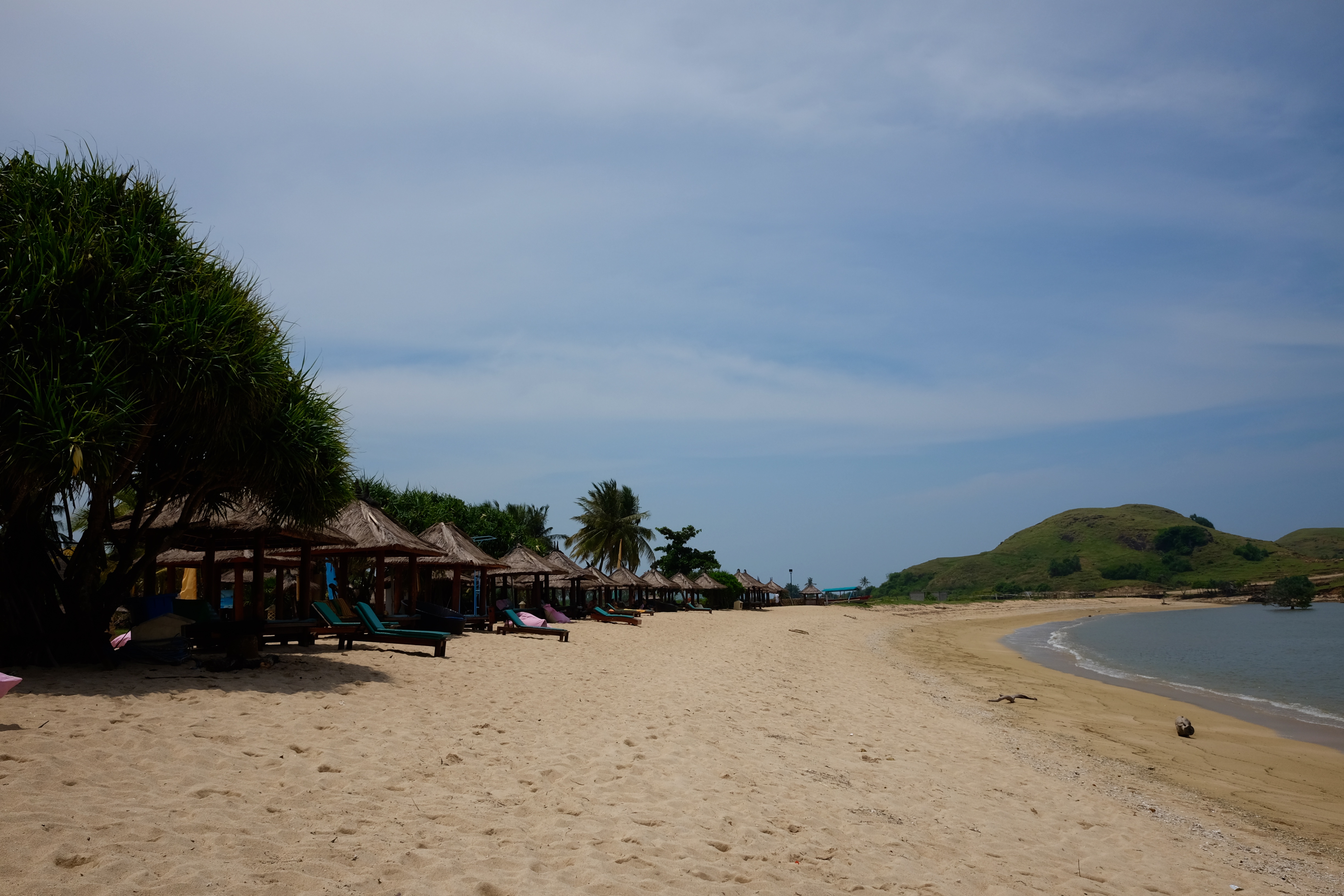 Vores første ferie i Indonesien gik til Lombok. Det var i julen 2015. Denne gang havde vi indlogeret os på den sydlige del af øen, hvor der er flere børnevenlige strande og hoteller. Og det foregik langt hen ad vejen også i børnenes tempo.Vi spiste morgenmad, mens hotellets køer udjævnede sandet med et fint “good morning” skilt om halsen til stor underholdning for Villads. Derefter udså vi os et sted i skyggen tæt ved vandet, som passede særligt Saga godt, da hun endnu er så lille, at hun har svært ved at temperaturregulere. En frisk havbrise kom os til gode i varmen, og det var derfor ganske udholdeligt.