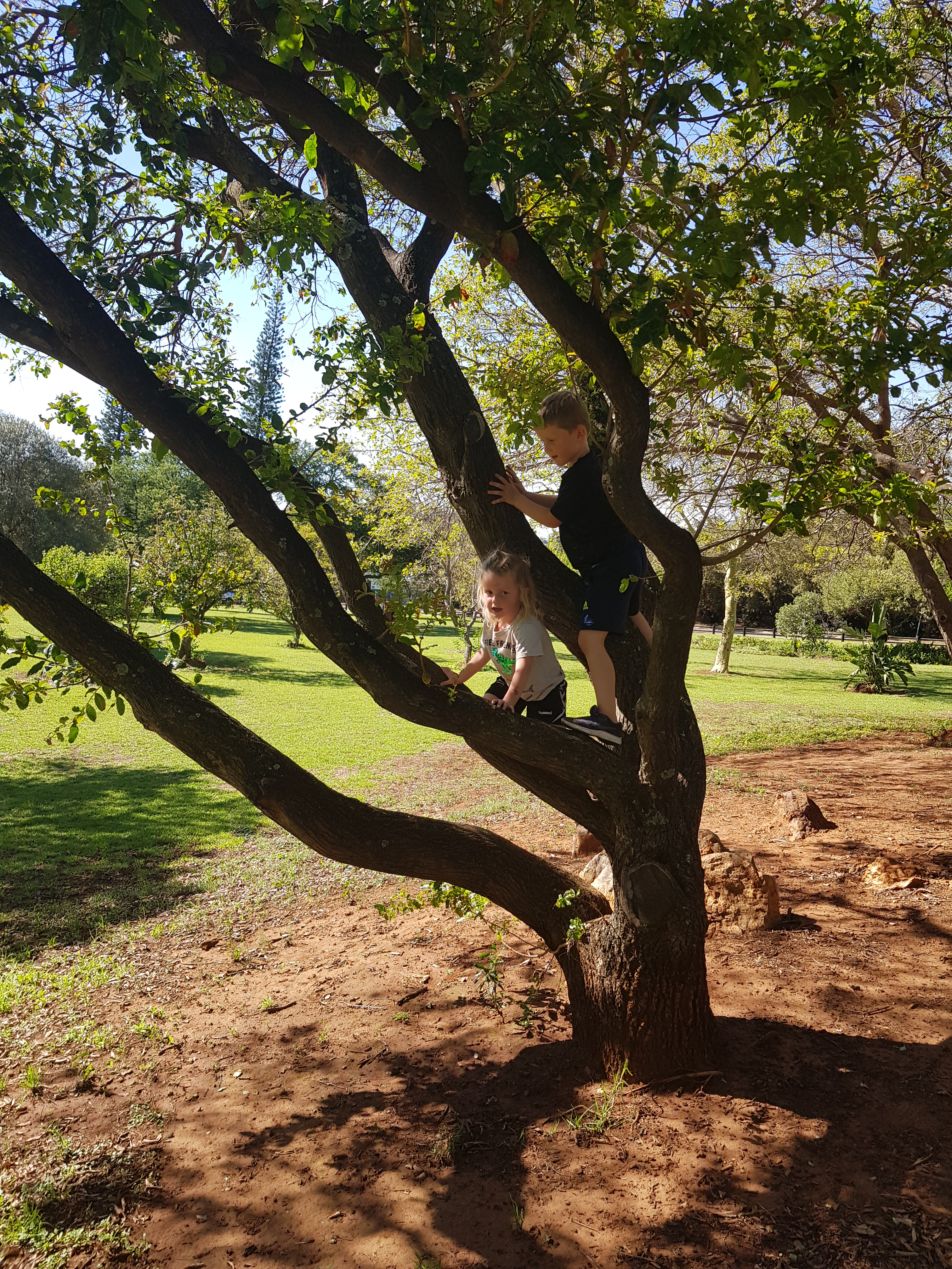 Lige rundt om hjørnet fra hvor vi bor, ligger der to parker. Den ene er en decideret hundepark, hvor hundene kan løbe frit, og den anden er mere en miniature udgave af en botanisk have, hvor mange familier har fundet sig til rette på et tæppe i skyggen af et af de særlige træer. Og med en meget snaksaglig hundehvalp, altså så snaksaglig at han slikker fremmede mennesker i ansigtet, lod vi ham blive i snor, mens folk nød deres lørdag til en familiefødselsdag i parken. Begge parker efterlod fantastiske indtryk. Først og fremmest er det uvurderligt at bo i en by med frisk luft og grønne områder. Det var vi ikke vant til i Indonesien. Dertil var der en dejlig broget skare tilstede i parken, hvor vi for alvor fik Sydafrikas diversitet at se.