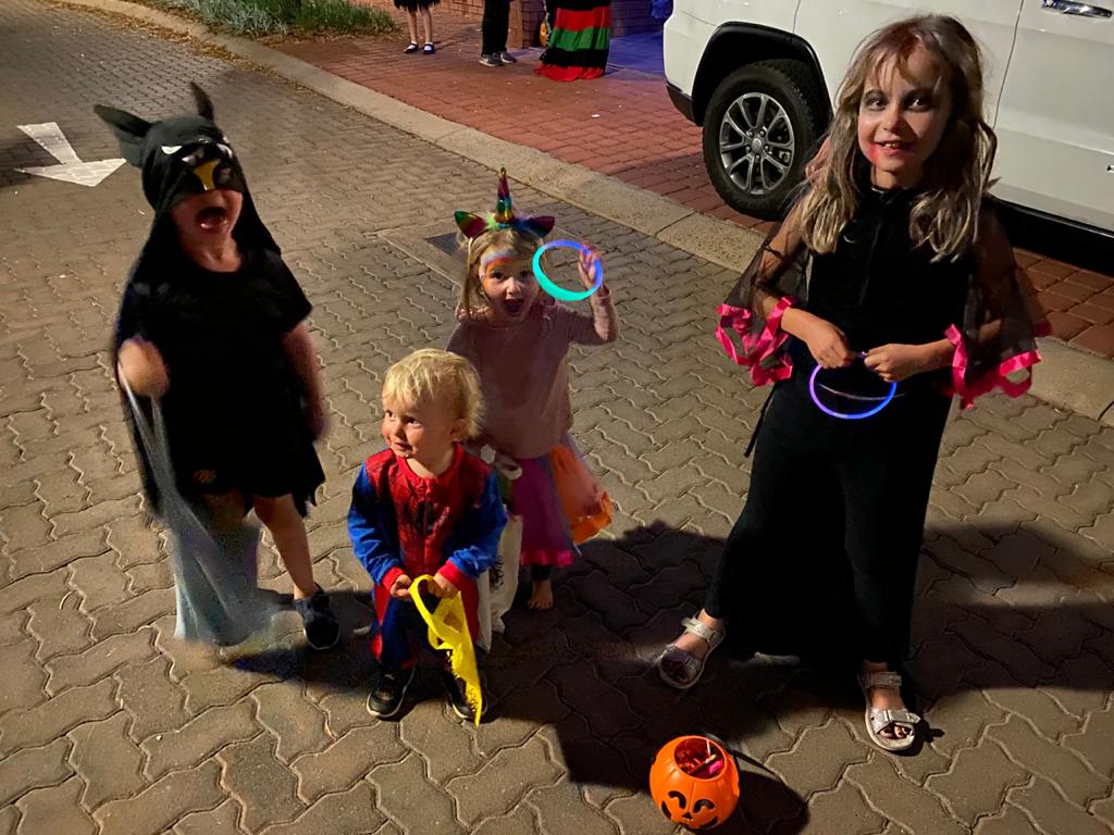 Men som om at det ikke var nok, så blev vores tømmermænd ikke blot udfordret af en tur på rideskolen. For blot nogle timer senere, skulle vi afsted til halloween arrangeret af den britiske ambassade. Utroligt fint arrangement med hyperaktive børn, der løb i syv forskellige retninger, spiste donuts af en snor, tiggede om fanta og slikkepinde indtil, at de klokken halvsyv endelig måtte gå, mest af alt spæne, fra hus til hus og råbe “trick or treeeeeeeeeat”. På det tidspunkt havde vi og de andre to forældrepar givet helt op og forsøgte ikke engang at følge med i børnenes tempo. De kom løbende mere og mere glade og ekstatiske tværs over gaden i takt med mængden af slik der blev fyldt i poserne. Helt som halloween skal være.