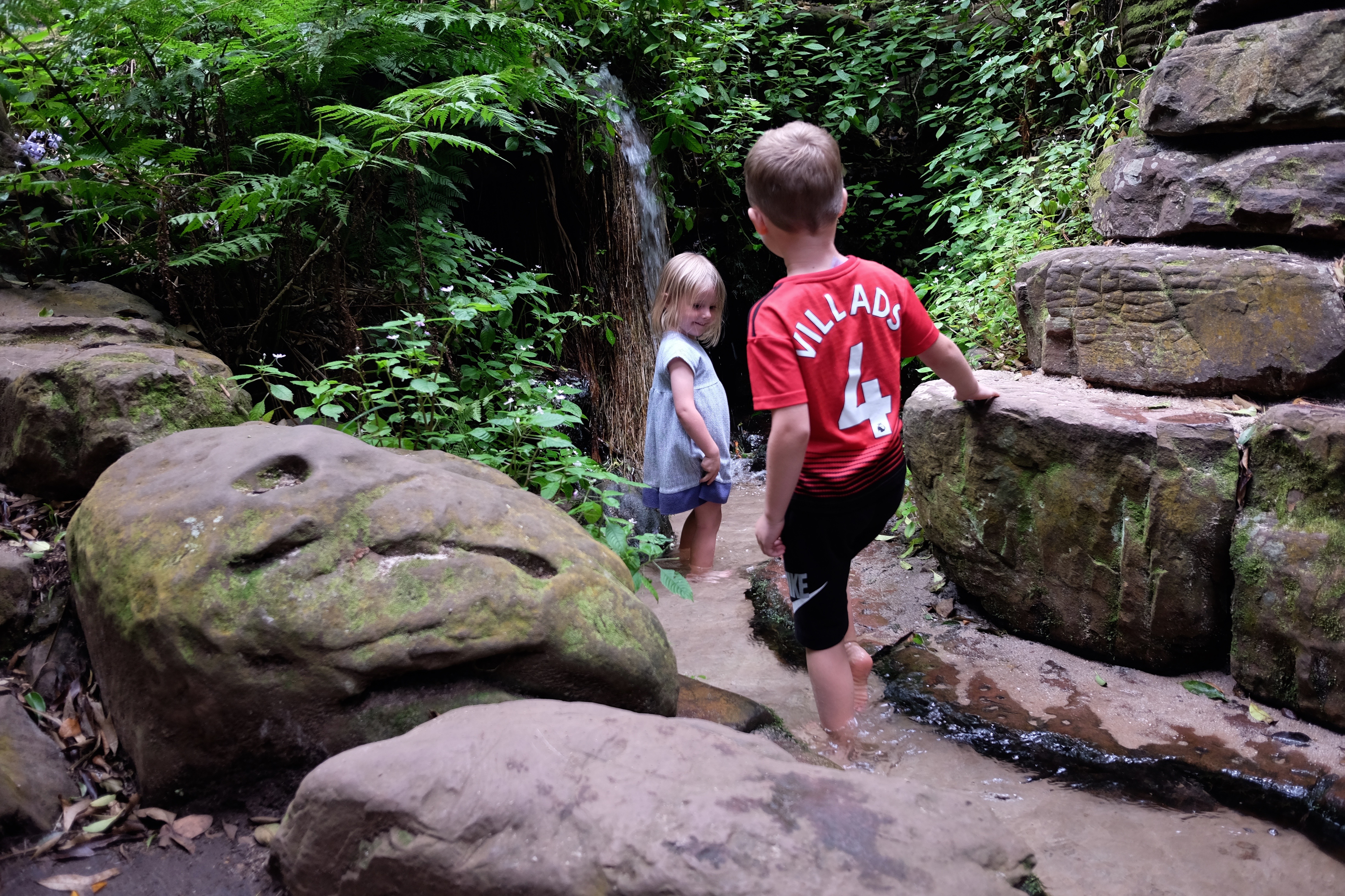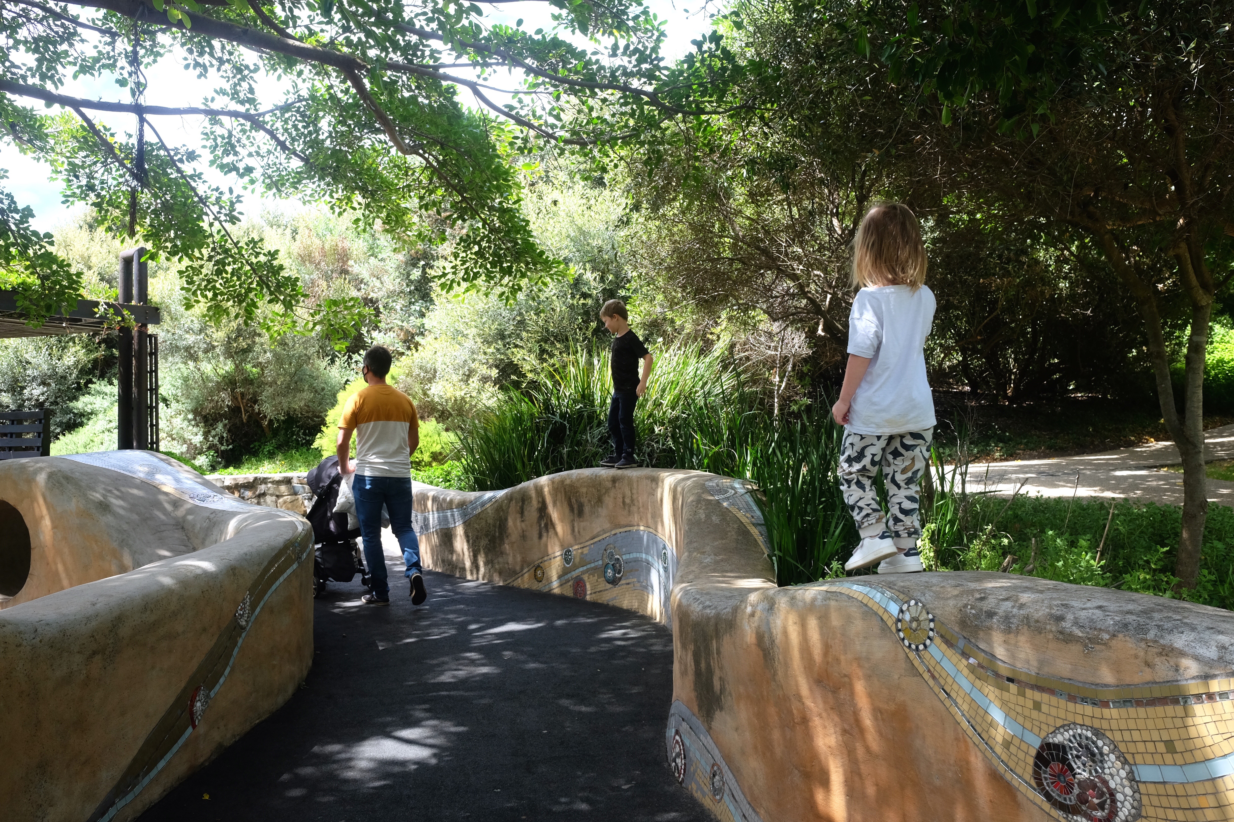 I løbet af den uges tid vi befandt os i Cape Town, besøgte vi deres botaniske have to gange. Det er noget nær den smukkeste park, vi nogensinde har besøgt. Den ligger på bagsiden af Table Mountain, hvorfor parken er ganske kuperet med en fænomenal udsigt til bjerget. For børnene var det en naturlegeplads af en anden verden bestående af klatretræer, kilder man kunne krydse, vandfald, en dinosaurudstilling og en bro, der gik gennem trætoppene.