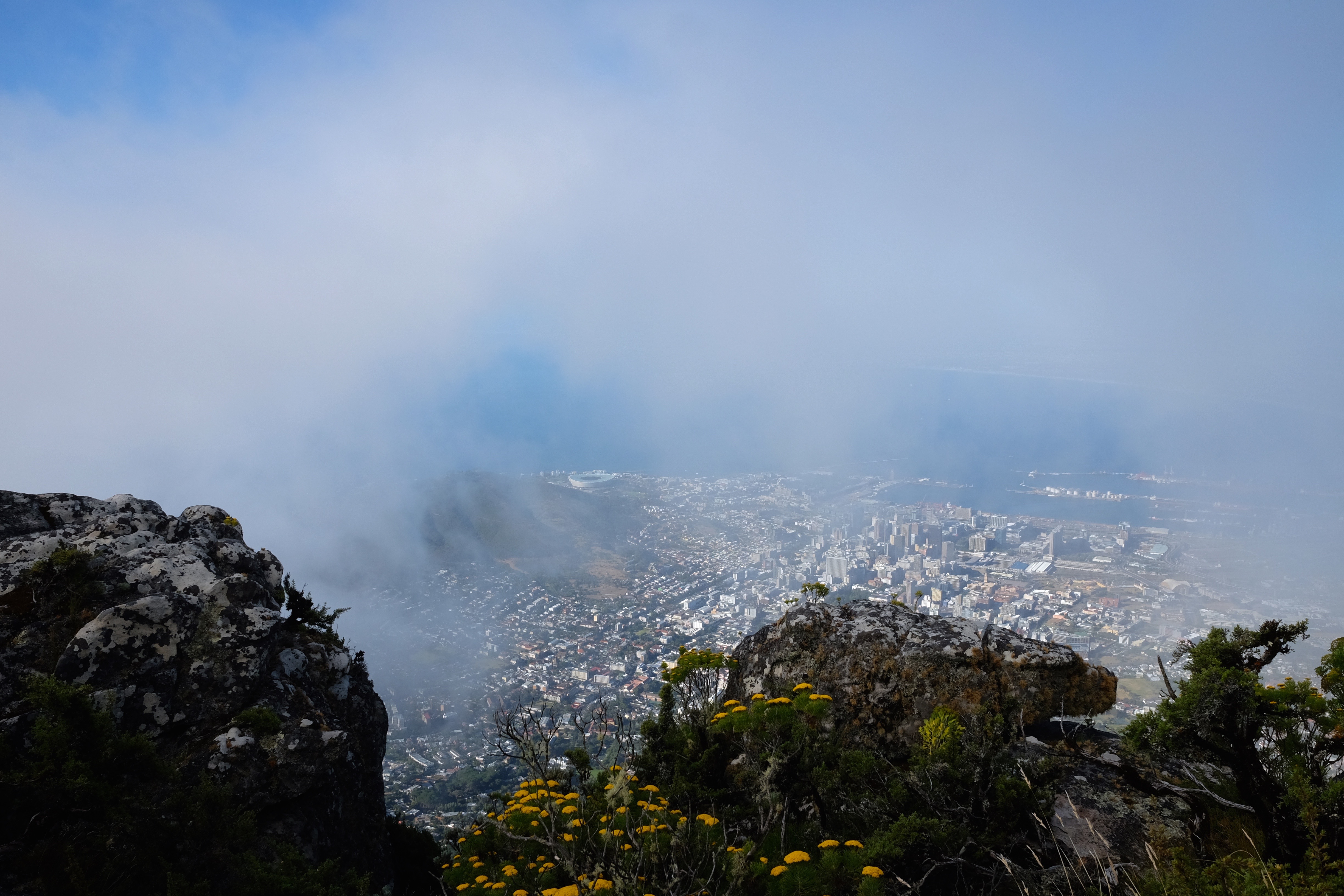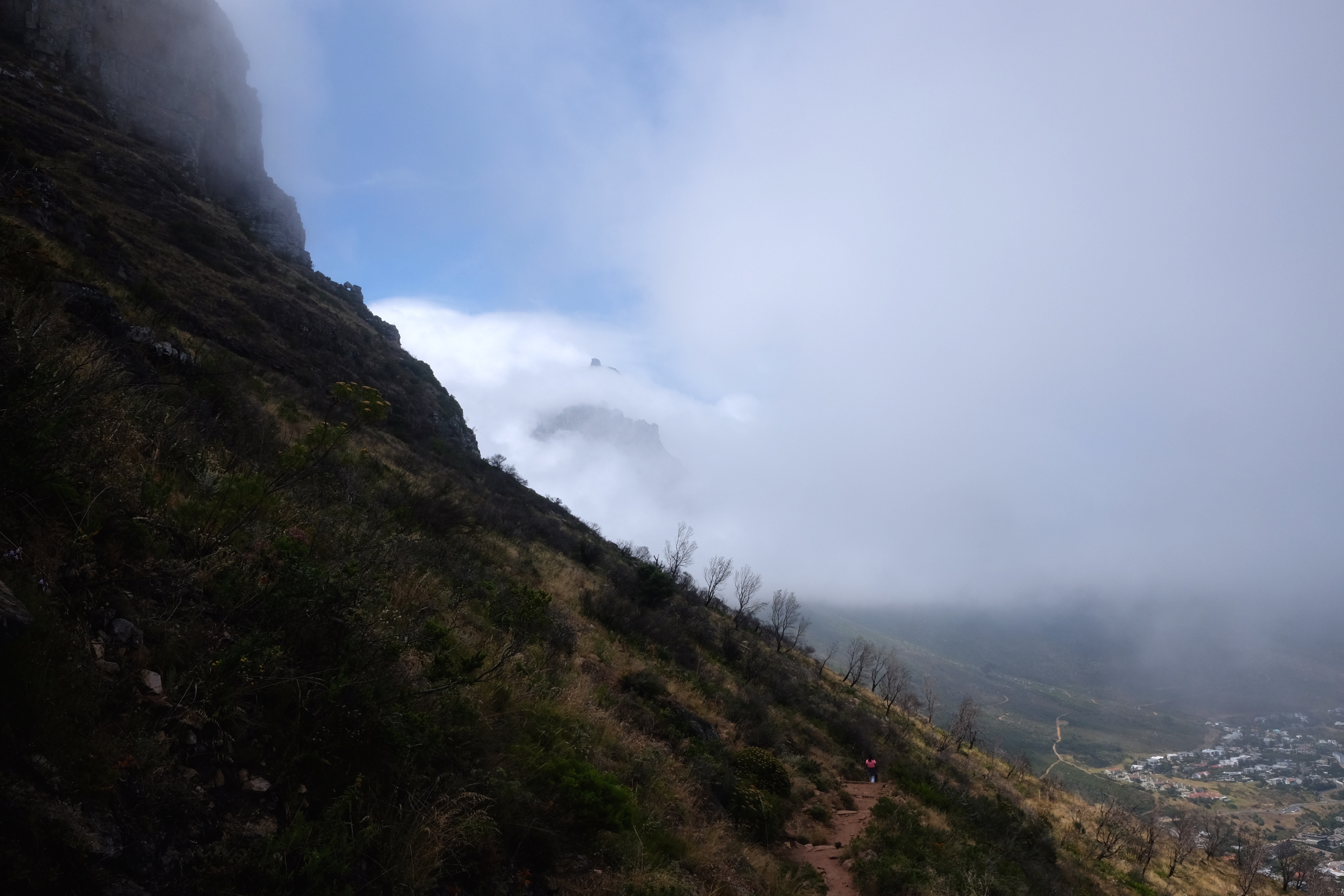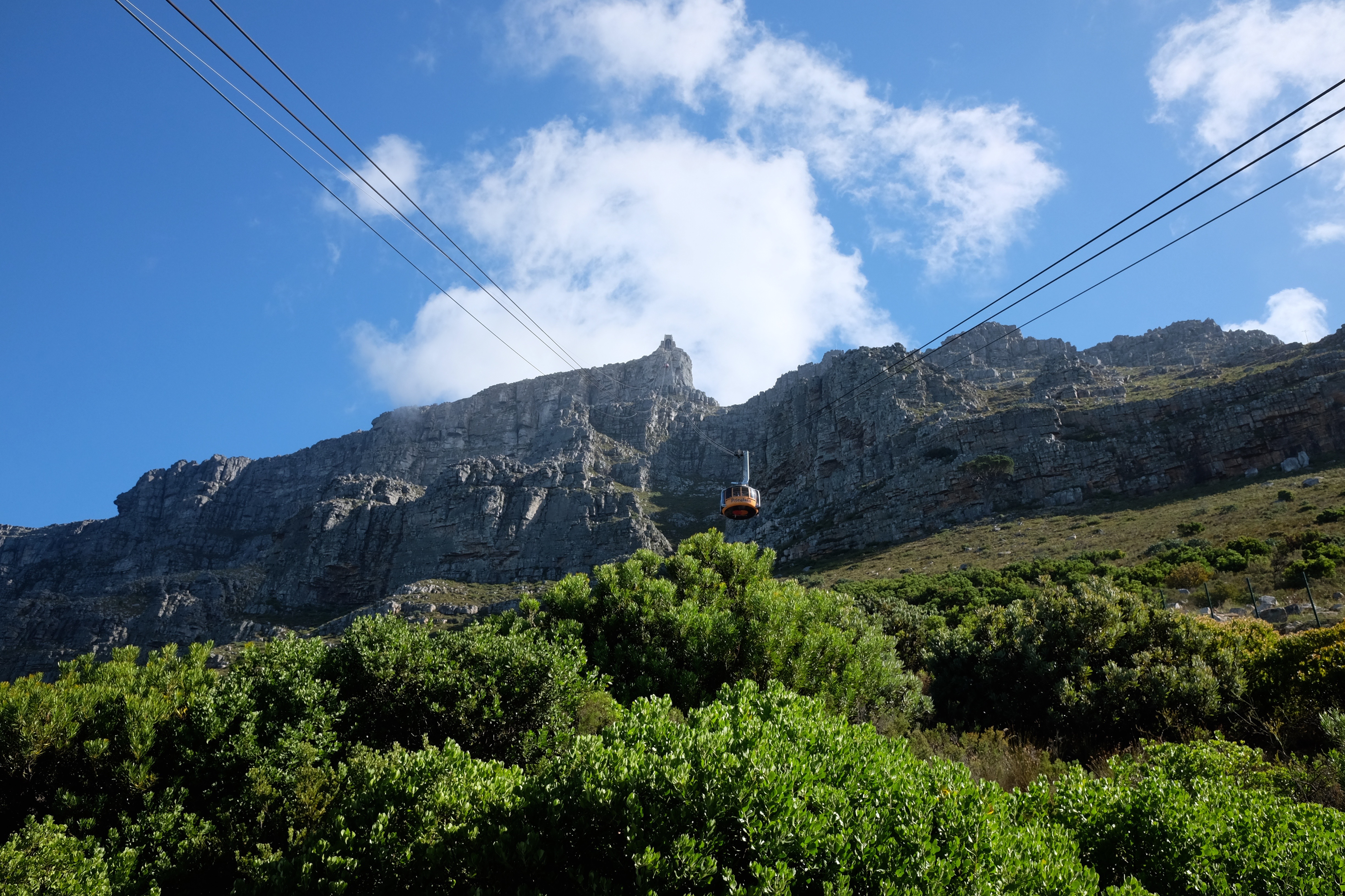 På vej op ad Table Mountain i deres stejle cablecar følte vi med eet, at vi var tilbage i Hong Kong på vej op ad The Peak. Men turen op på Table Mountain er markant stejlere, landskabet på toppen er magisk og udsigten til byen og de omkringliggende bjerge gjorde oplevelsen tilnærmelsesvist surrealistisk. Skyerne svævende ind over bjerget og kun i glimt kunne vi se byen for foden af bjerget, hvilket tilføjede et element af mystik til hele oplevelsen.