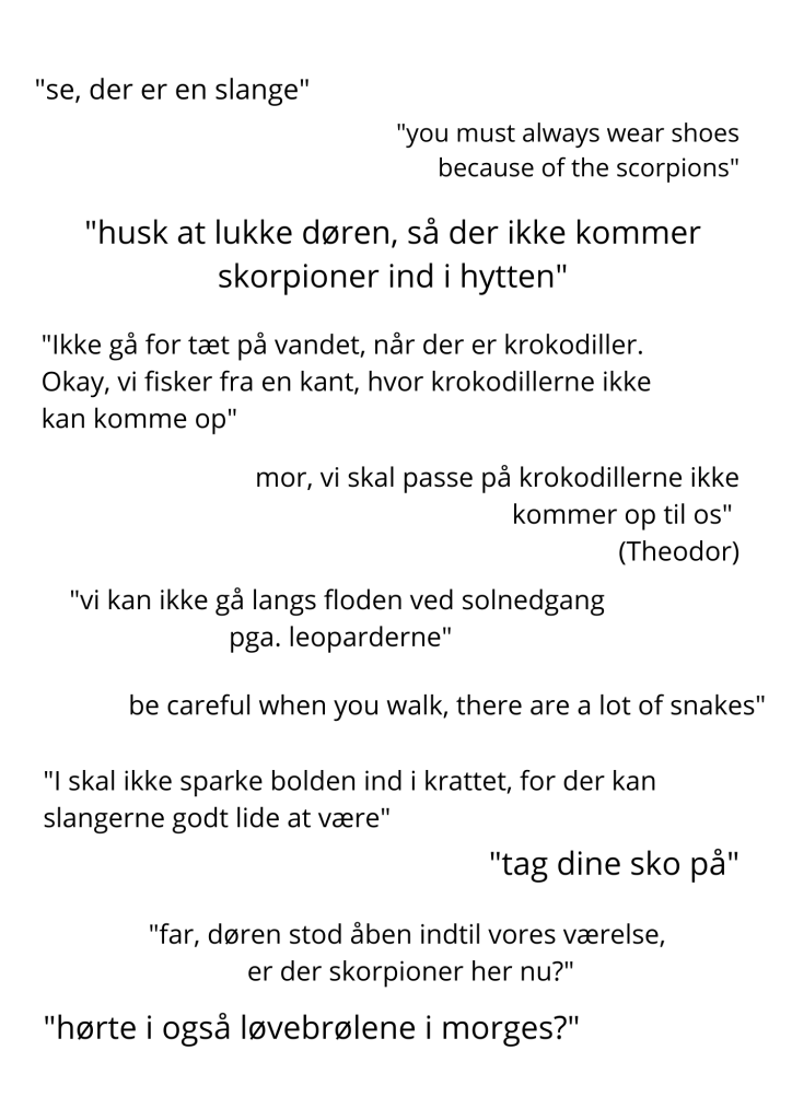 Det var en fantastisk weekend, hvor “less is more” konceptet holdt hele vejen. Men det var også en weekend, der understregede, hvor anderledes det er at rejse med børn på de her kanter, og at det måske var mere kontroversielt at lade dem lege gemmeleg end at lade dem se en antilope blive slagtet. Her er nogle eksempler på hvorfor: